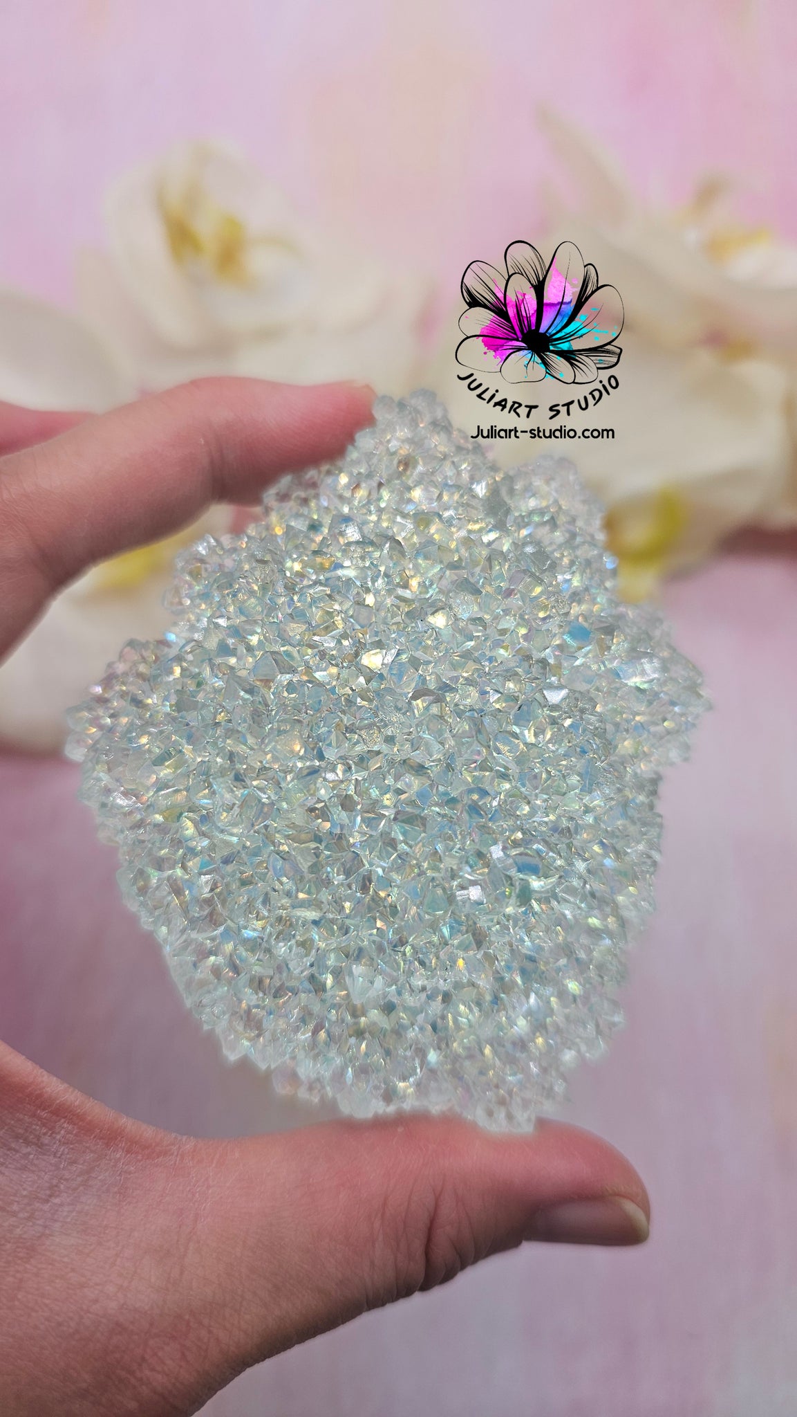3.25 inch Resin Crystal with Irredescent effect on the bottom that enhance rainbow reflection for the crystal cluster.