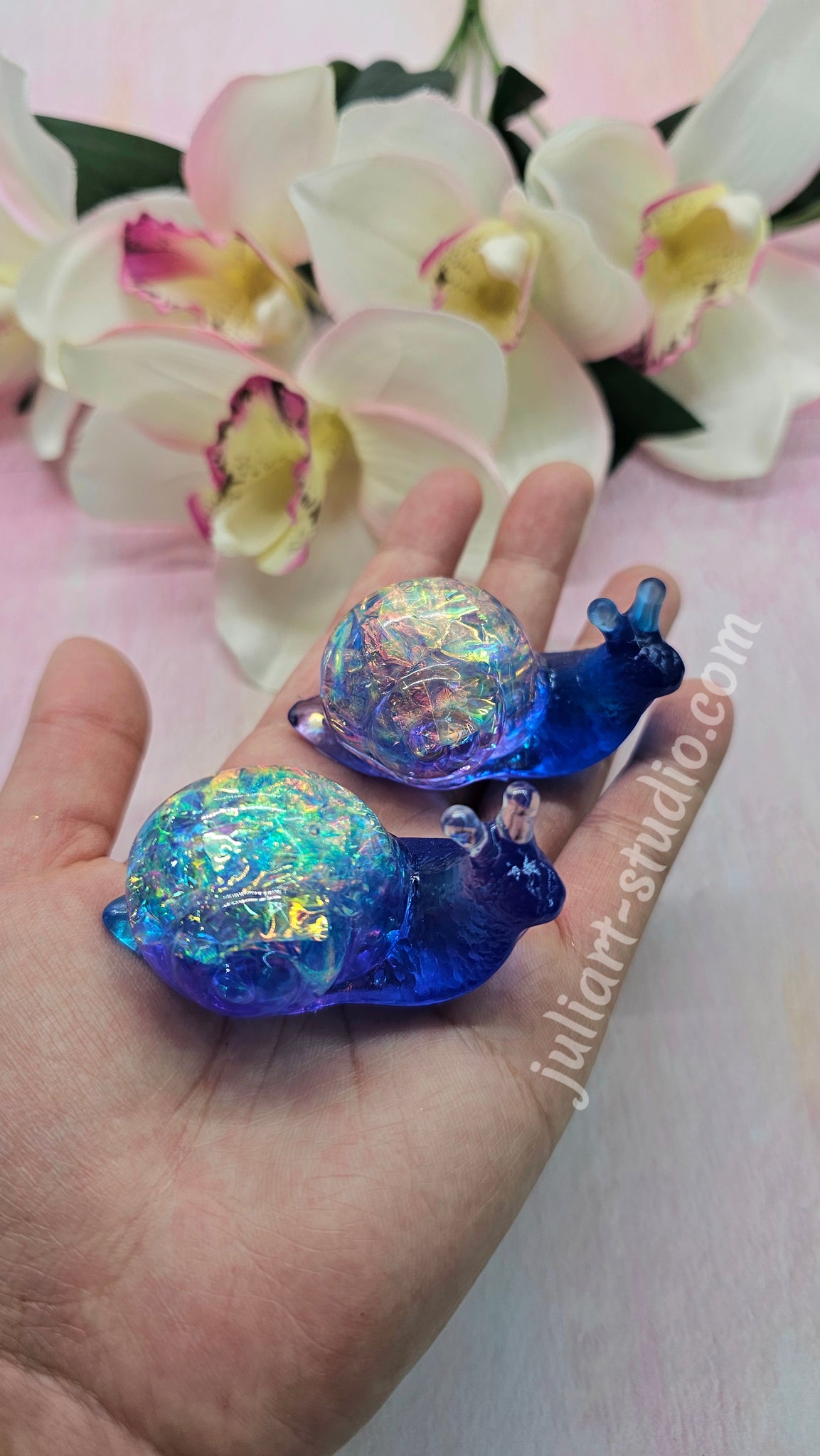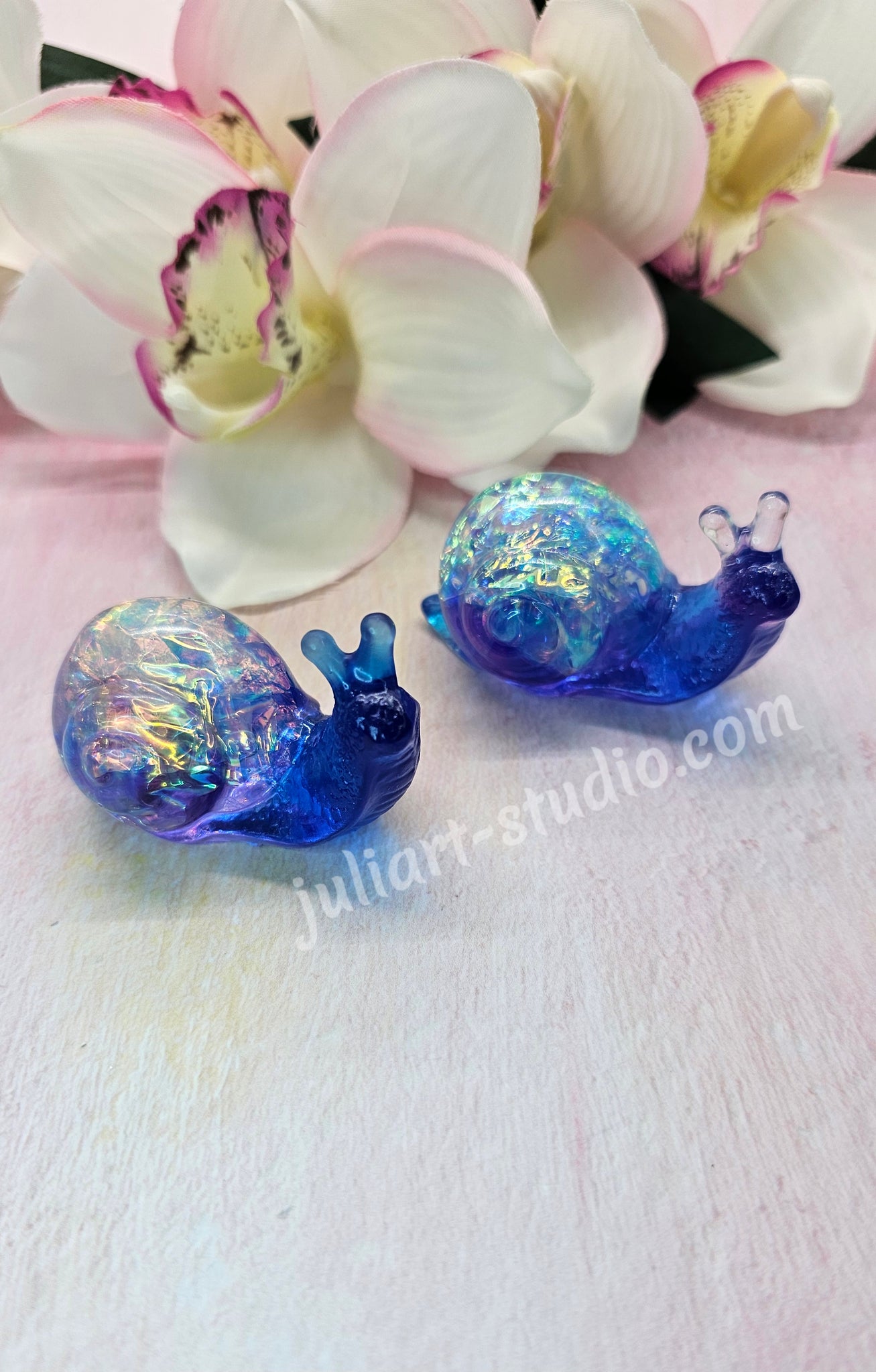 ONE 2.5 inch Resin Snail with Irredescent shell and Saphire Blue/Purple body (as pictures)