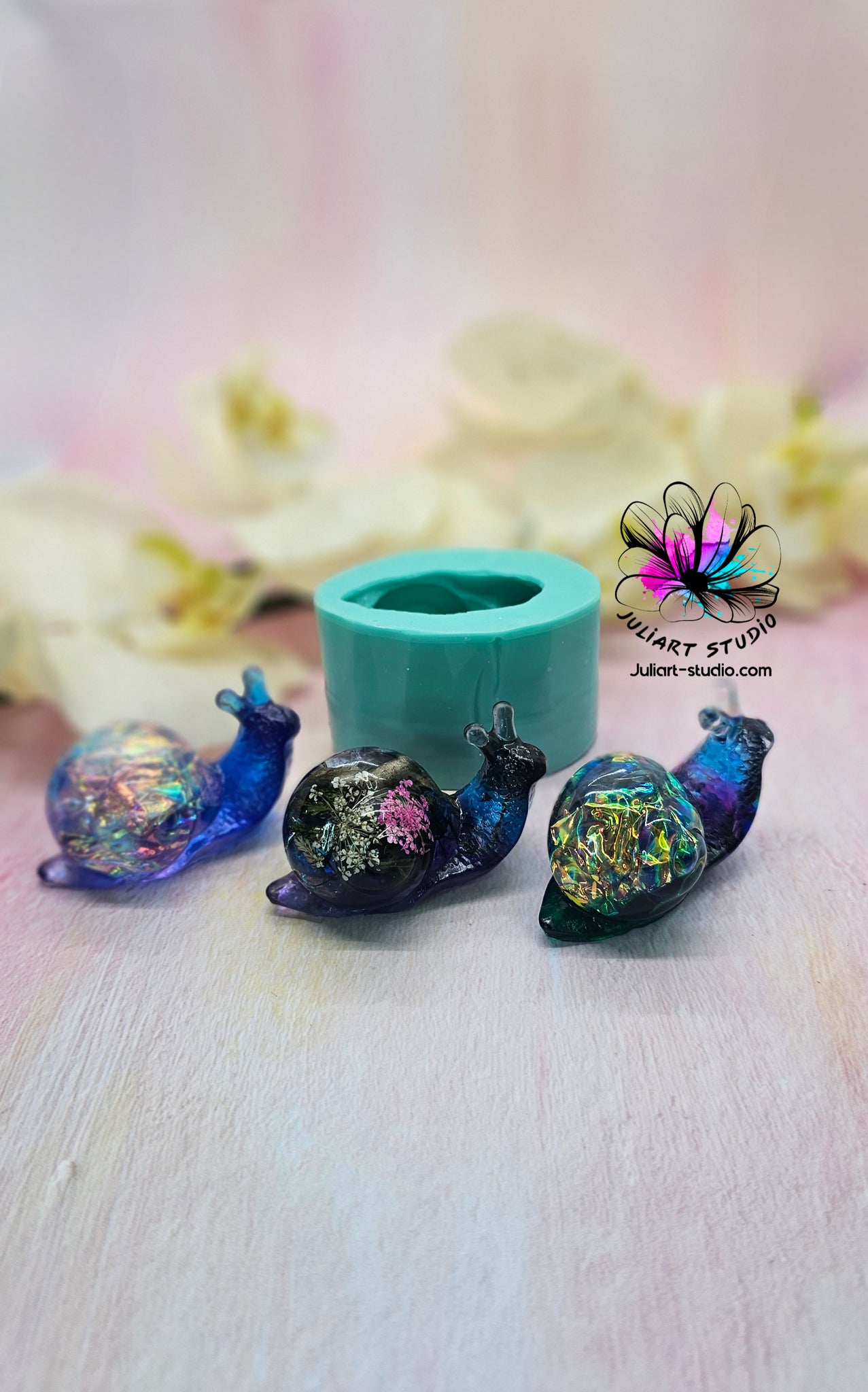 2.25 inch 3D Large Snail Silicone Mold for epoxy resin casting.