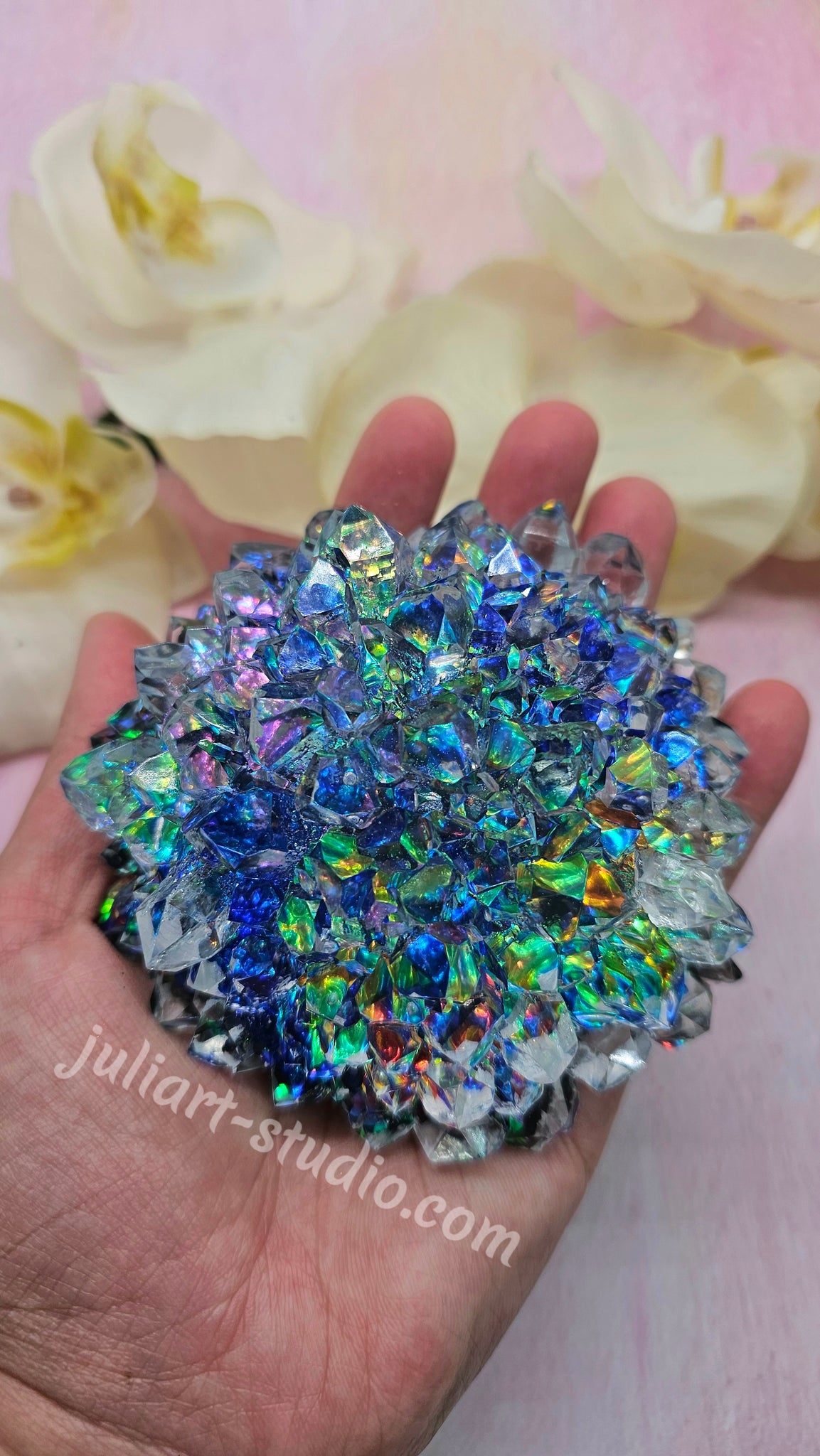 4 inch Resin Crystal Dahlia (Colorful Dichroic Background)